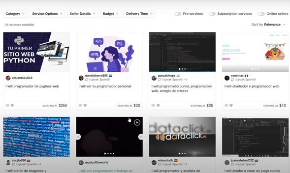 En este ejemplo busque un programador y me salen muchas opciones con precios variados.