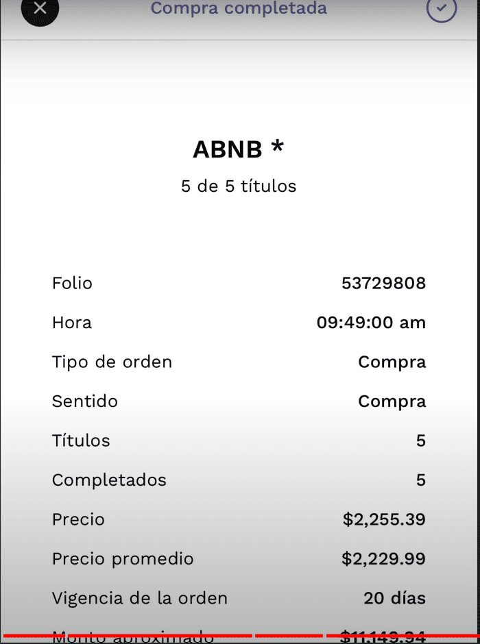Yo hace una semana empecé una posición, compré $11,000 pesos de Airbnb fueron 5 acciones en total.