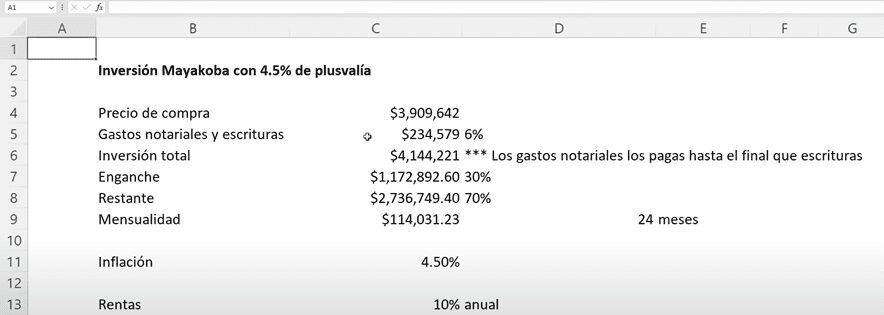 Vamos a hacer un análisis de un proyecto ahí en Mayakoba, el más barato que encontré estaba en $3.9 millones de pesos.