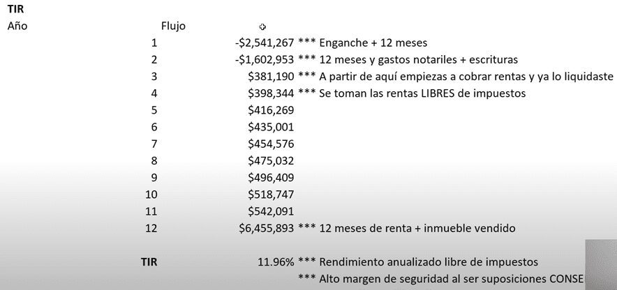 Con eso calculamos la TIR, esto lo vemos como un rendimiento anualizado ya libre de impuestos, pero te sugiero revisar todo esto con un contador.