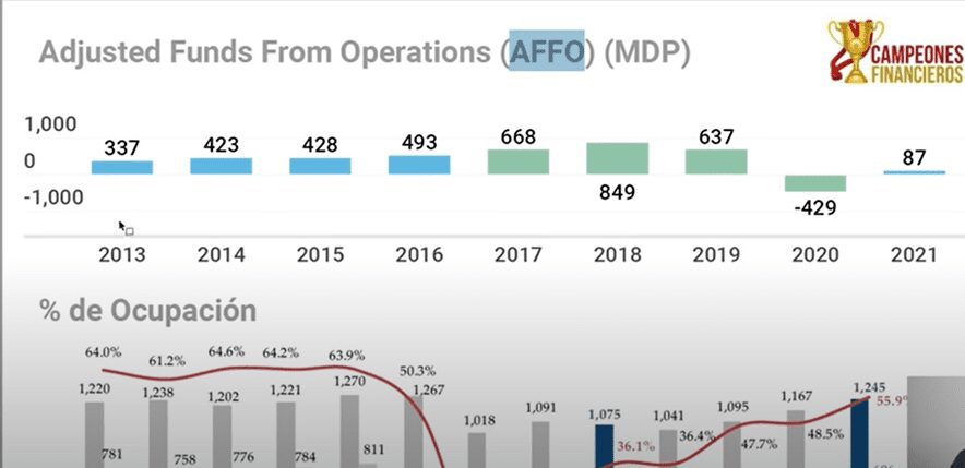 Vienen algunas métricas relevantes, esto se usa mucho a la hora de analizar los fideicomisos, es el AFFO (los fondos ajustados de las operaciones) esto está en millones de pesos.