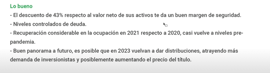 Me gusta lo que están haciendo, la persona mencionaba que ellos este 2022 se van a enfocar en que los recursos que generen usarlo para pagar su deuda, aumentando de manera teórica el precio de los títulos.