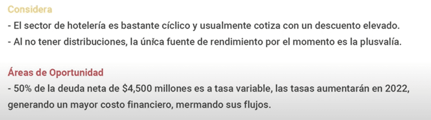 Hablé con un directivo de fibra hotel y nos comentaba sobre las inversiones que hacen, sus propiedades, etc.