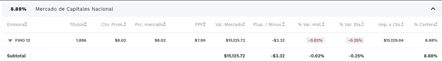 Compré 1886 títulos, tengo alrededor de unos $15,000 pesos invertidos ahí y la compré prácticamente al precio de los $8 pesos por título.