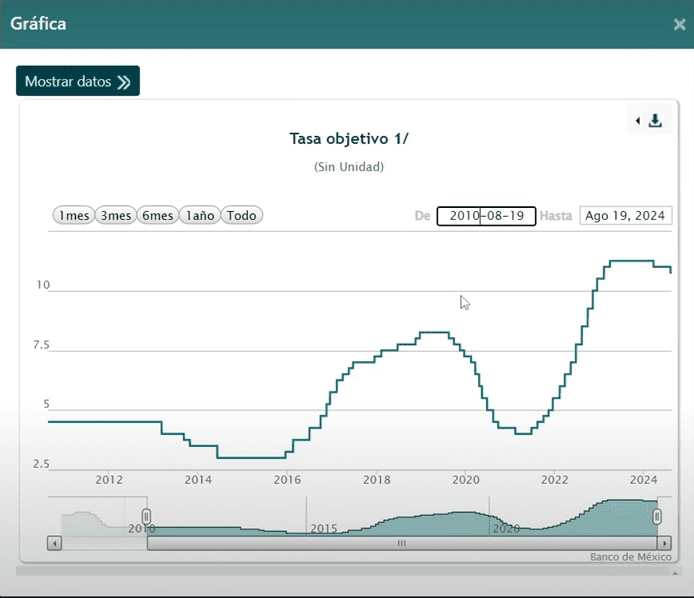 No es sorpresa para nadie que las tasas ya han comenzado a bajar, podemos partir de la tasa objetivo que fija el Banco de México.