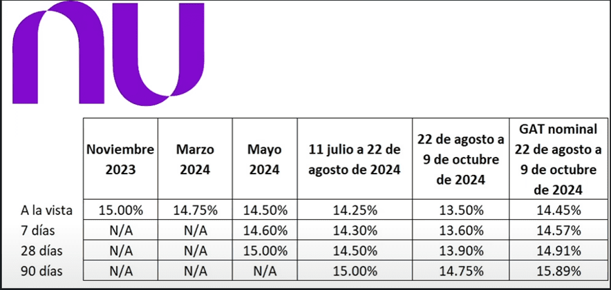 La SOFIPO más famosa hasta el momento es Nu, que comenzó con una atractiva tasa del 15% a la vista con liquidez 24/7.