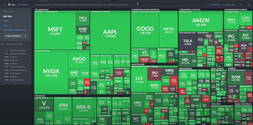 Y aparte de las acciones que te estoy mencionando podemos ver en el mapa de color que hay muchas otras en color verde, quiere decir que todas estas tienen ganancias.