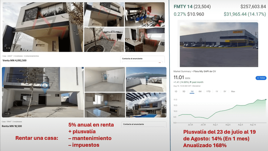Lo que puedes ver es que una casa en venta de 4 millones de pesos te puede dar una renta mensual de $18,500 pesos.