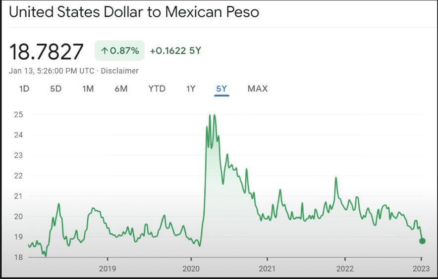 El día 13 de enero de 2023 por la mañana amanece el peso mexicano cotizando a $18.78 por cada dólar.