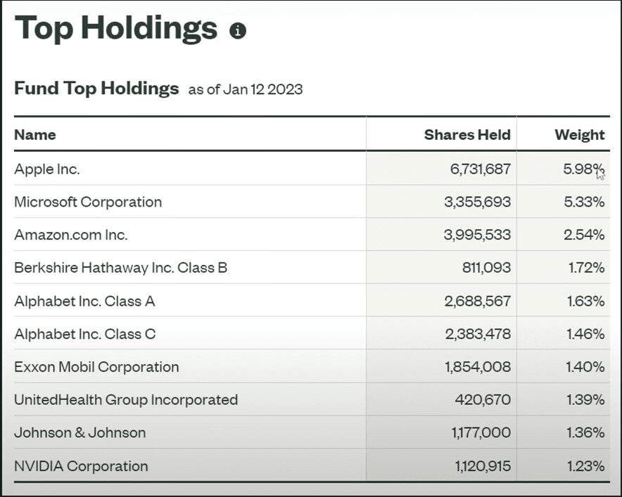 Tiene comisiones muy bajas del .03% al año sobre lo que inviertes y vas a tener acceso a las 500 empresas más grandes de Estados Unidos.