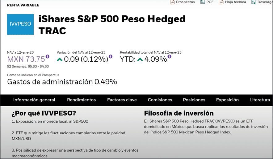 Si tú crees que el peso se va a seguir fortaleciendo y el dólar va a seguir bajando y no quieres invertir en un instrumento dolarizado porque te va a afectar, puedes comprar la misma versión de este ETF pero que está en pesos.