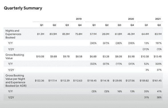 Dicen que las noches y experiencias que se reservaron en su plataforma en su segundo trimestre de 2021 fueron 83.1M de experiencias reservadas.