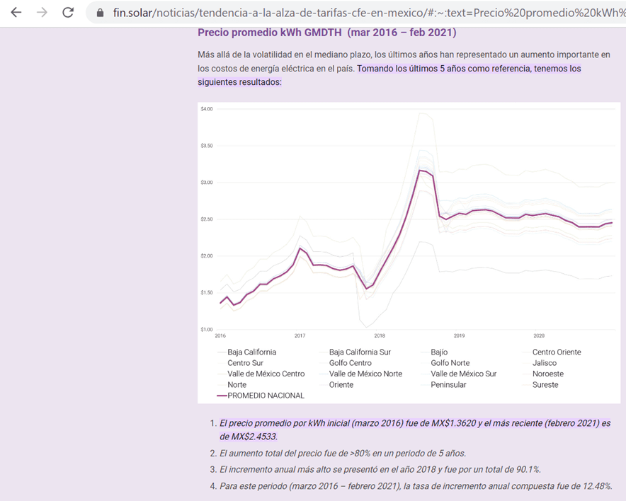 Es el precio promedio por kWh de marzo de 2016 a febrero de 2021.