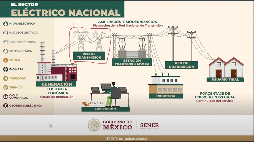 Podemos ver que primero está la comisión federal de electricidad que transmite la energía eléctrica.