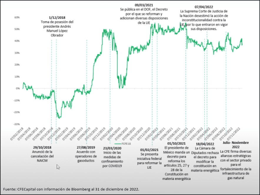 Por ejemplo, podemos ver que en 2018 entró un presidente y la fibra de la CFE bajó más de 20%.