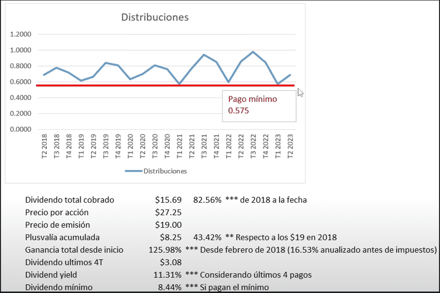 Salió a $19 pesos el título, eso quiere decir que ya es el 82% que han pagado en distribuciones.