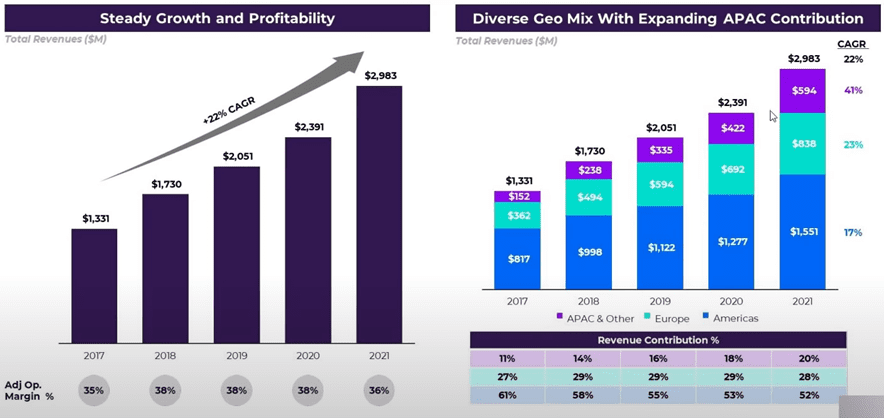 Vendían $1,300 millones de dólares en 2017, en 2018 $1,700 millones de dólares, en 2019 $2,000 millones de dólares, en 2020 $2,300 millones de dólares y en 2021 $2,900 millones de dólares.