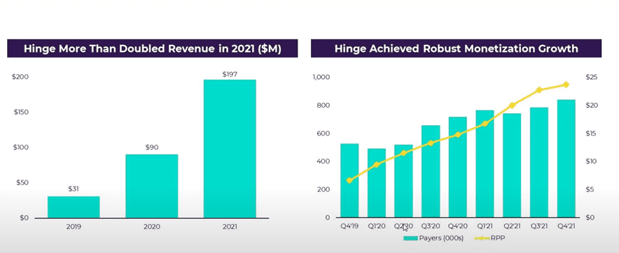 Ahorita estamos hablando que tiene 800,000 usuarios la plataforma de Hinge y lo que ganan por usuario también ha ido incrementando, actualmente está ya casi en los $25 dólares.