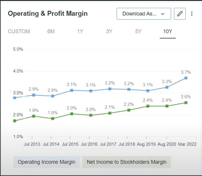Si vemos sus márgenes operativos y margen de ganancia neta, es lo mismo, los márgenes van aumentando.