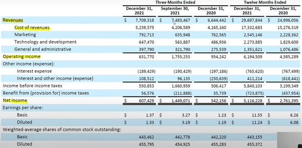 Si nos vamos al estado de resultados vamos a hablar sobre sus ventas, de 2020 a 2021 tuvieron sus ventas de $24,000 millones de dólares a $29,000 millones de dólares.