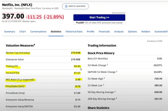 Justamente por eso caen, no me voy a cansar de decírtelo, si tú pagas demasiado por una empresa, el día que la empresa no de tan buenos resultados como lo que estamos viendo con Netflix se va a desplomar.