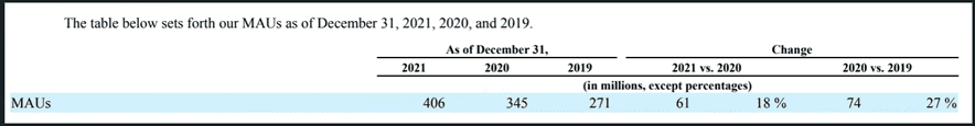 Te voy a mostrar una tabla de sus usuarios activos al mes de 2019 a 2021 para que veamos la comparación.