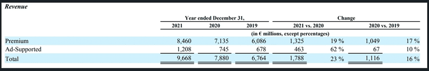 Estamos hablando que de $9,600 millones de euros que vendieron en 2021, $8,400 millones llegaron de las suscripciones y tan solo $1,200 millones llegaron de los anuncios.