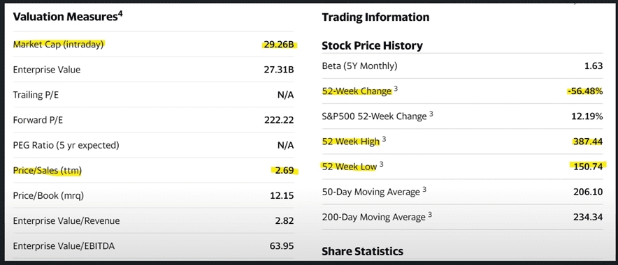 Esta acción ha bajado más de 58% en las últimas 52 semanas, es una locura, de $358 dólares a $150 dólares, la verdad que es una bajada considerable.
