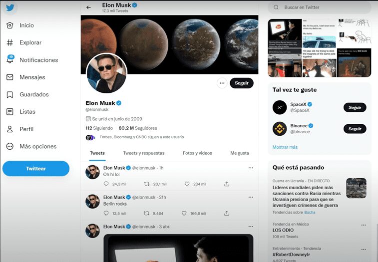 Si no conoces Twitter, te voy a mostrar cómo se ve, específicamente viendo el Twitter de Elon Musk.