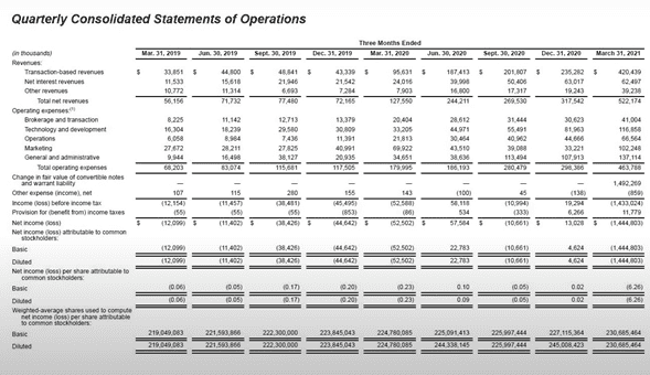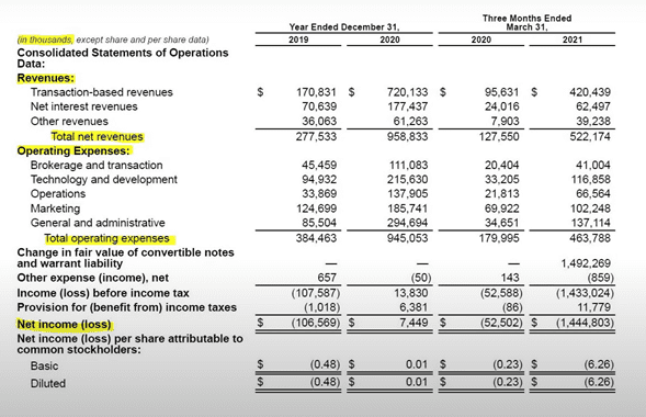 Realmente Robinhood no ha tenido muchas ganancias, opera bajo pérdidas, en 2020 tuvo poca ganancia.