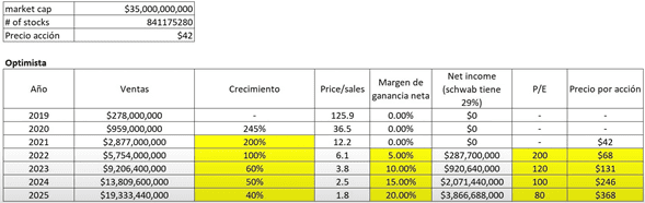 Intenté asumir algunos márgenes estimados de ganancia neta ya en el futuro que sean rentables, actualmente ni siquiera tienen ganancias.