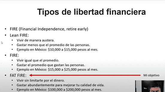 Yo tengo el objetivo en un futuro lejano llegar a lo que es el FAT FIRE, poder gastar lo que ya gasto ahorita, pero sin hacer ya nada.