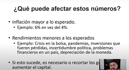 Tal vez la inflación es más alta de lo que esperábamos y en lugar del 4% es el 5% o 6%, eso quiere decir que vas a tener que juntar más capital.