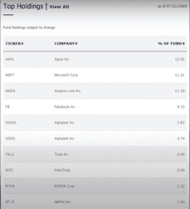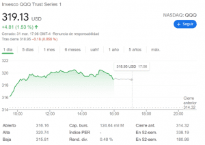Este ETF va a seguir a otro índice que se llama el NASDAQ-100 donde hay mayormente empresas tecnológicas.