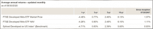 Los rendimientos que este ETF ha dado en este último año es de -4%, últimos 3 años 0.77%, últimos 5 años 2% y últimos 10 años en promedio por año 6%.