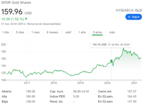 Este ETF se cotiza en $160 dólares aproximadamente y aquí no hay dividendo, aquí ganas si el precio del oro si sube.