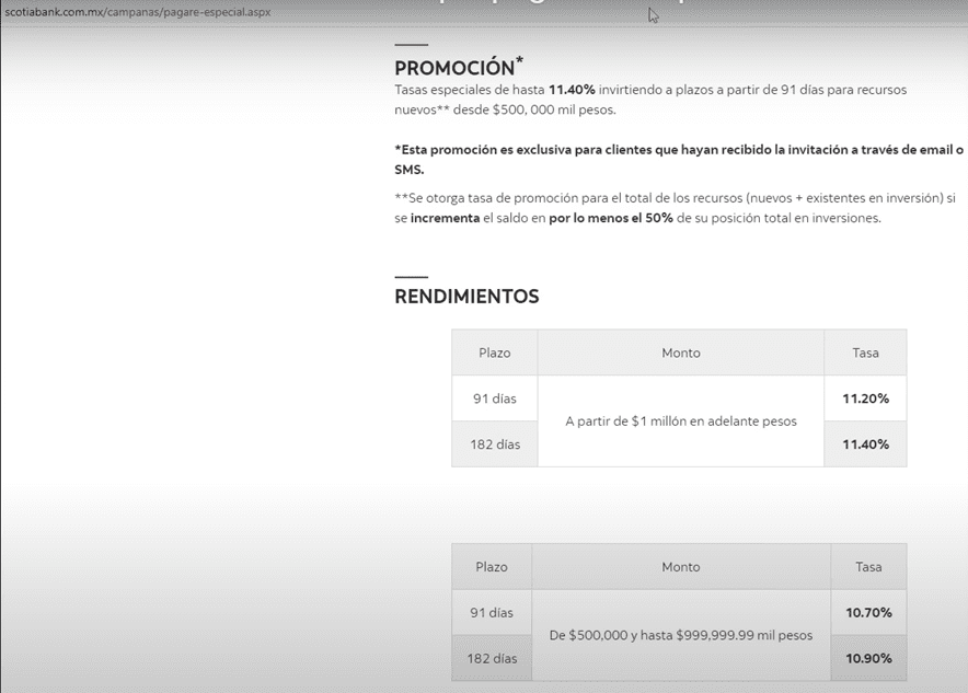 Sólo que aquí también menciona que es para recursos nuevos y es desde $500,000 pesos y es exclusiva para clientes que hayan recibido la invitación a través de email o SMS.