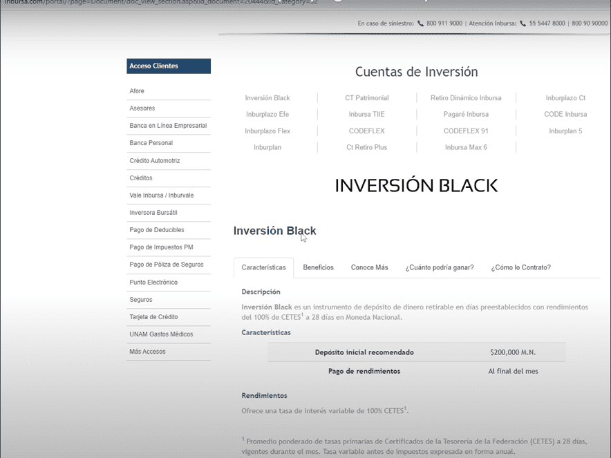 Este banco tiene muchas inversiones, pero yo encontré la siguiente que se llama “Inversión Black”.