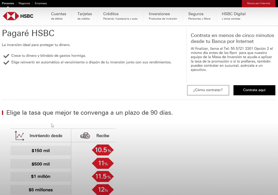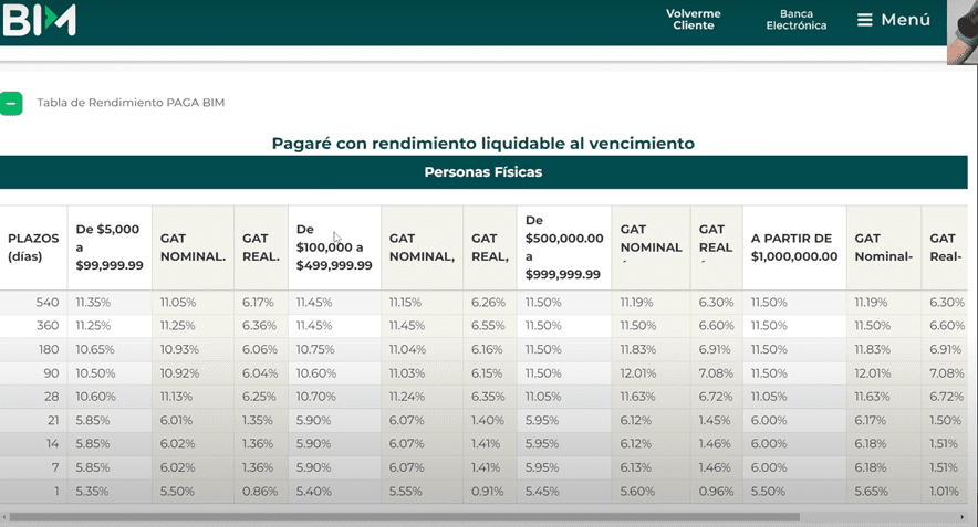 Uno de ellos es su pagaré con rendimiento liquidable al vencimiento, puedes entrar con $5,000 pesos y las tasas dependiendo del plazo pueden ir del 5% al 11.35%.