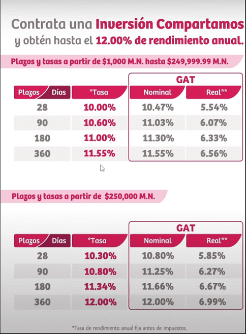 Y si quieres invertir más de $250,000 pesos te pagan desde 10.30% a 12%.
