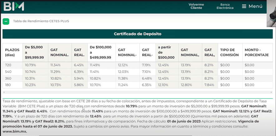 Sí el monto invertido es arriba de $500,000 pesos te pagan el 11%, si es de $1 millón te pagan el 11.5% y si es arriba de los $5 millones te pagan el 12%.