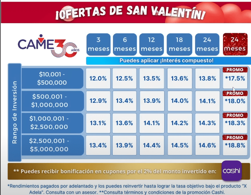 Luego, está la de CAME, qué a simple vista si ves el plazo de 24 meses con un 17.5% te das cuenta de que es el que más paga de todos.