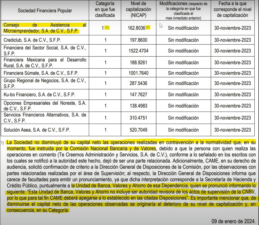 Y en la nota que viene abajo dice que la sociedad no disminuyo de su capital neto las operaciones realizadas en contravención a la normatividad que en su momento fue instruida por la CNBV.