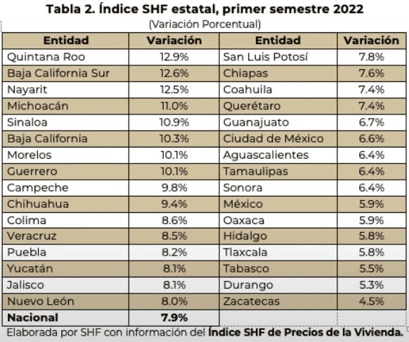 Ellos publican lo que es el índice SHF de precios de la vivienda en México cada 3 meses.