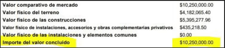 En la imagen se puede ver cómo el inmueble está valuado en $10.25 millones de pesos y a mí me dieron un crédito de $6.7 millones de pesos.
