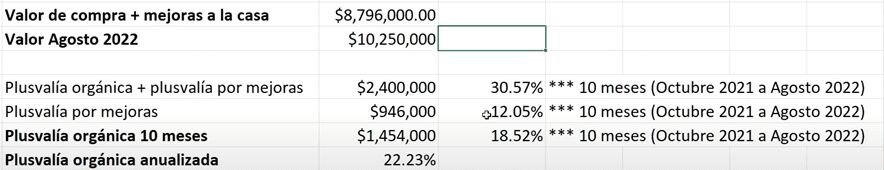 Pero recuerda que esto sólo es de 10 meses, por qué la plusvalía orgánica anualizada es del 22%.