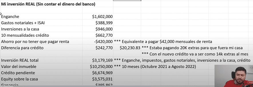 Porque la gran mayoría de ese dinero es del banco, es dinero que tengo que pagar, pero sin embargo yo estoy cobrando toda la plusvalía.