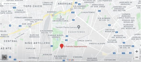 Te voy a mostrar un mapa en donde está ubicado, el punto rojo donde dice El Patriota Departamentos es la zona donde van a construir el departamento.