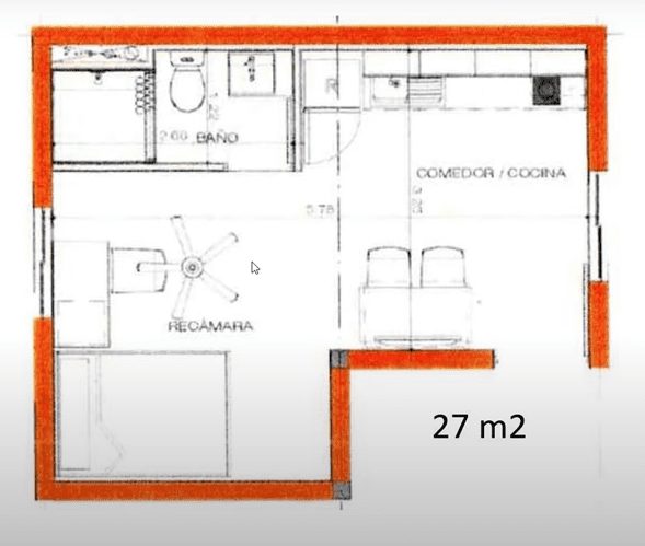 Ahora te voy a mostrar el plano de mi departamento, que es de 27 metros cuadrados.