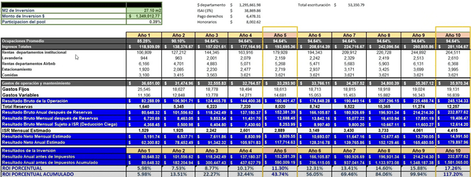 Abajo en la tabla viene el porcentaje estimado en rentas que voy a estar cobrando al año sobre inversión inicial.